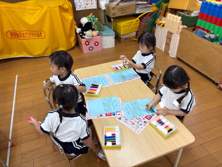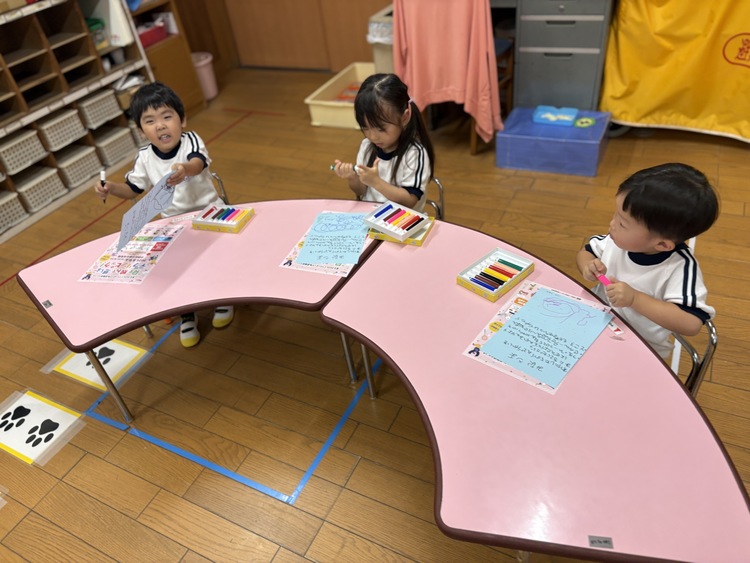 運動会の招待状の絵と自由画を描きました!