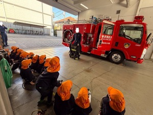 消防署に感謝の気持ちを伝えて消防車に乗ったり見せていただきました!