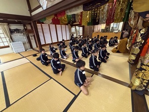 坐禅の時間です!住職さんのお経を聞き静かな気持ちで過ごしました。