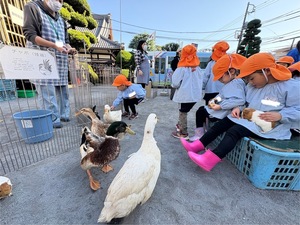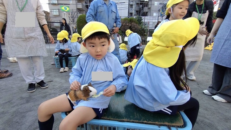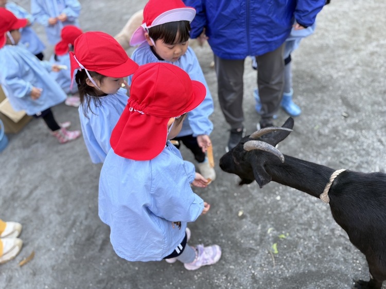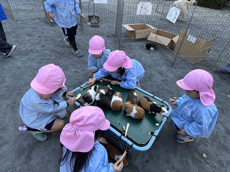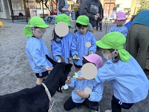 園庭にはウサギやモルモット、ヤギ、ヘビなど様々な種類の動物たちが遊びに来てくれ、子どもたちは楽しい触れ合いの時間を過ごしました。